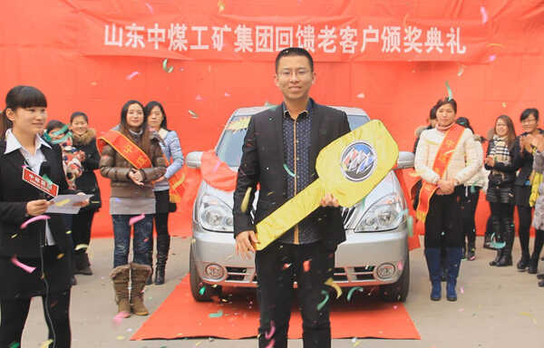 2月3日上午,山东中煤集团“2015年回馈客户积分返利”抽奖活动送出首辆汽车大奖——一辆别克商务汽车,来自东泰机械的张总成为积分让利抽奖活动首位大奖获得者。