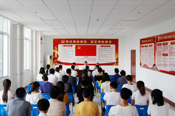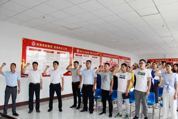 在鲜艳而庄严的党旗下,全体党员齐唱国歌,高昂的歌声汇聚成一种昂扬向上的力量。在集团党委副书记关成辉的带领下,全体党员在庄严的党旗下进行入党宣誓,重温入党誓词、铭记入党初心,铿锵有力的誓言,使党员们的思想再次得到升华,进一步加深了对党的性质、宗旨和荣辱观的认识,增强了拥护党的领导的信心和决心。
